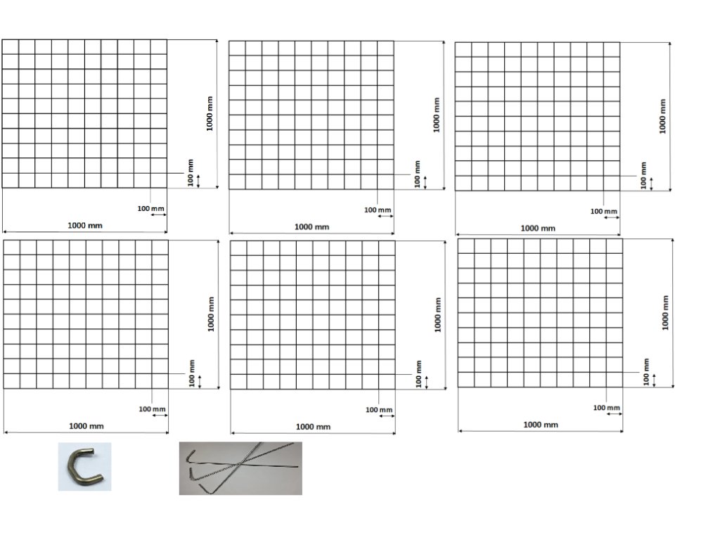 - 6 ks gabionových sítí o rozměru 1000 x 1000 mm s okem 100 x 100 mm a průměrem drátu 4 mm